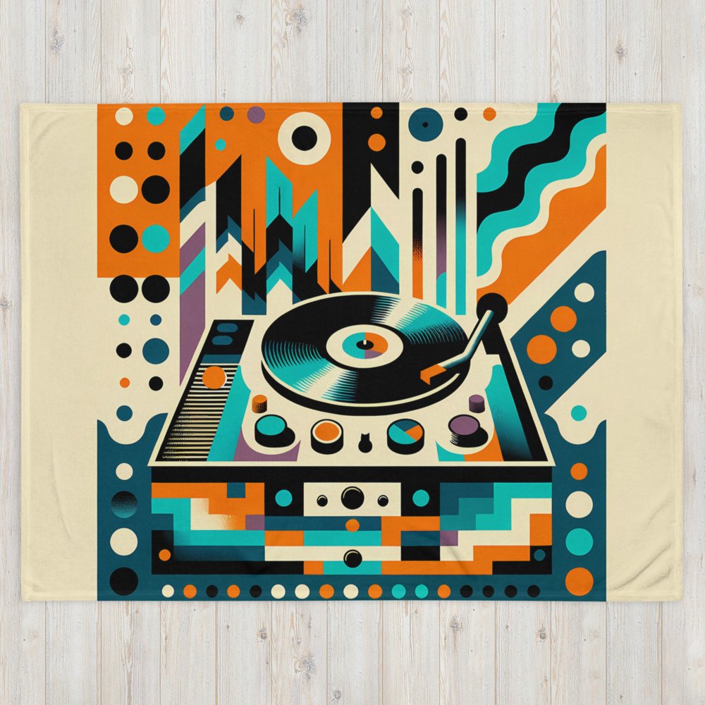 Memphis Turntable Abstract Geometric Pattern — Throw Blanket