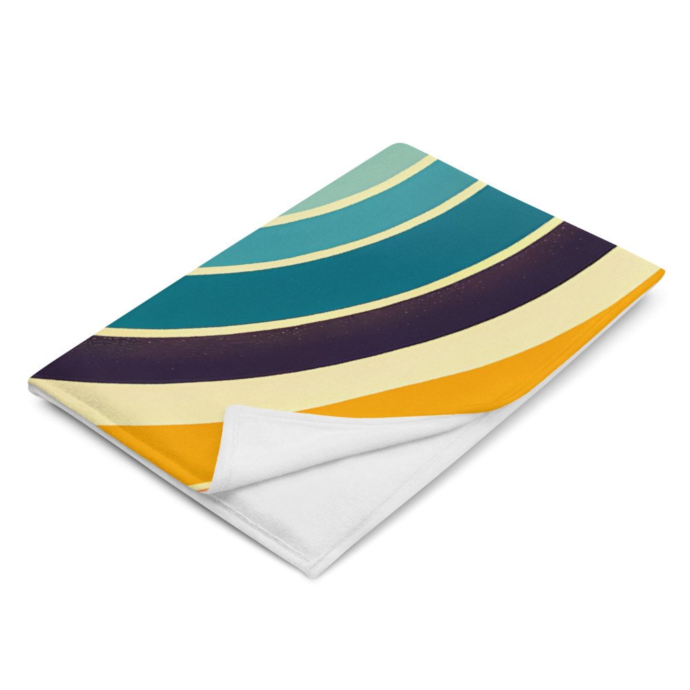 A bold geometric composition of layered arches radiating from a central sun, built from clean lines and concentric shapes. Warm orange and golden tones contrast with teal and navy bands for a vintage-inspired palette. The structured layout echoes modern graphic text art and bold typography aesthetics without using words.