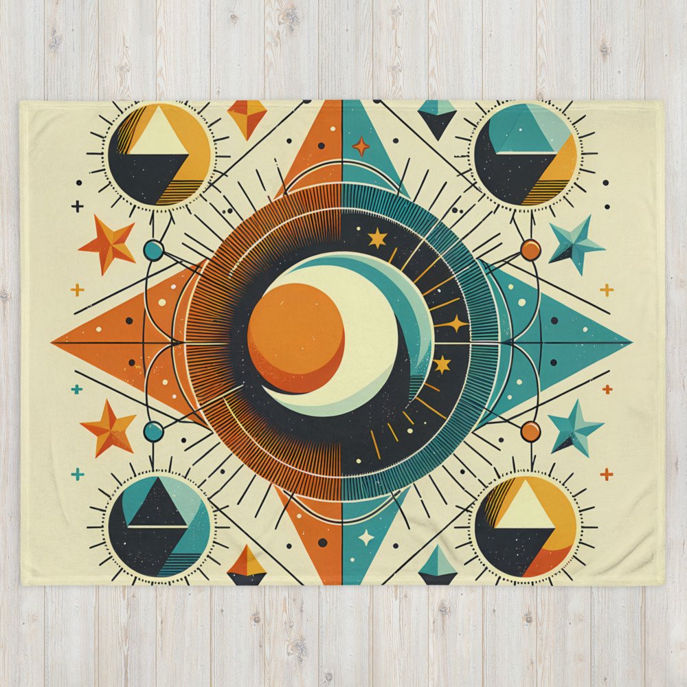 Geometric Sun and Moon Celestial Mandala — Throw Blanket
