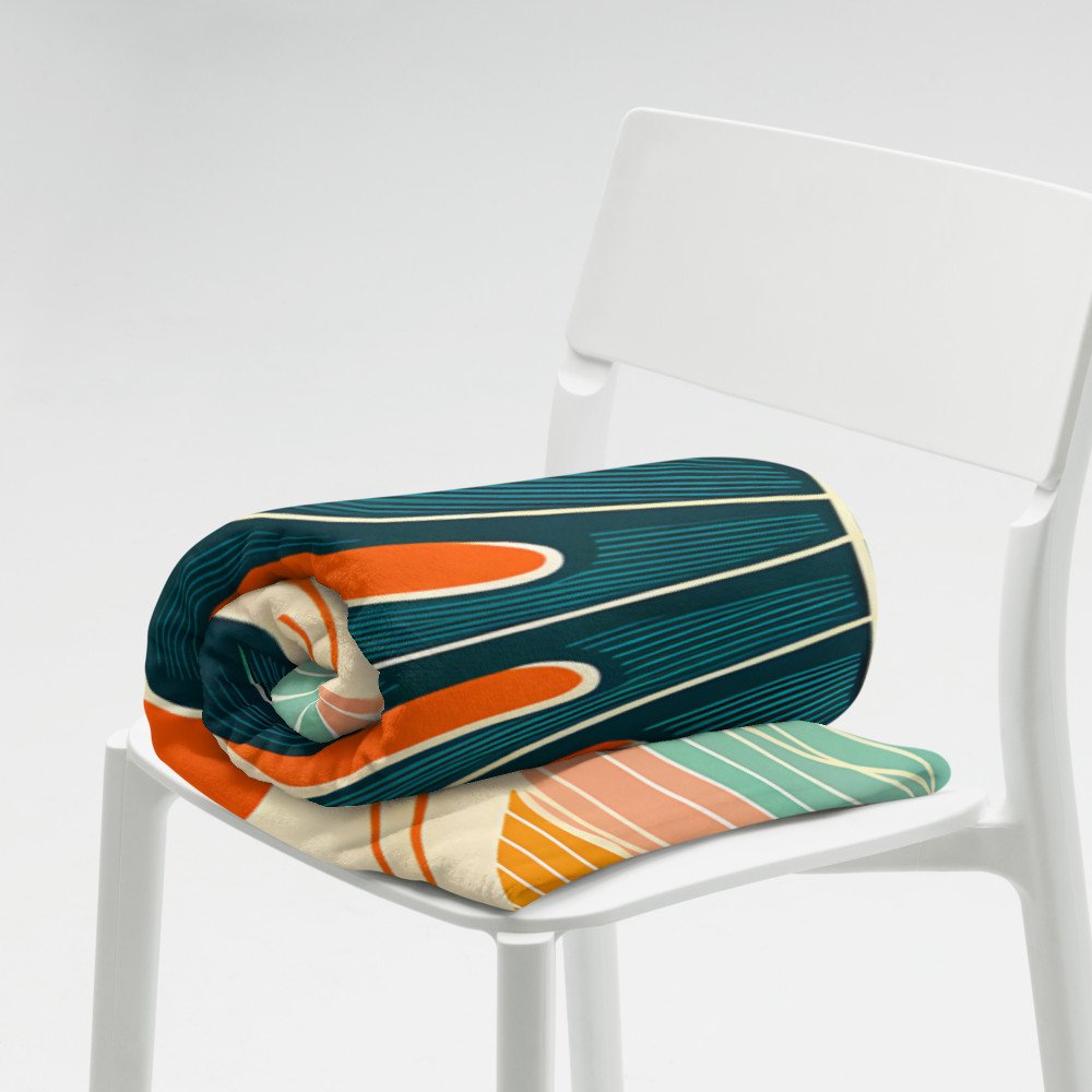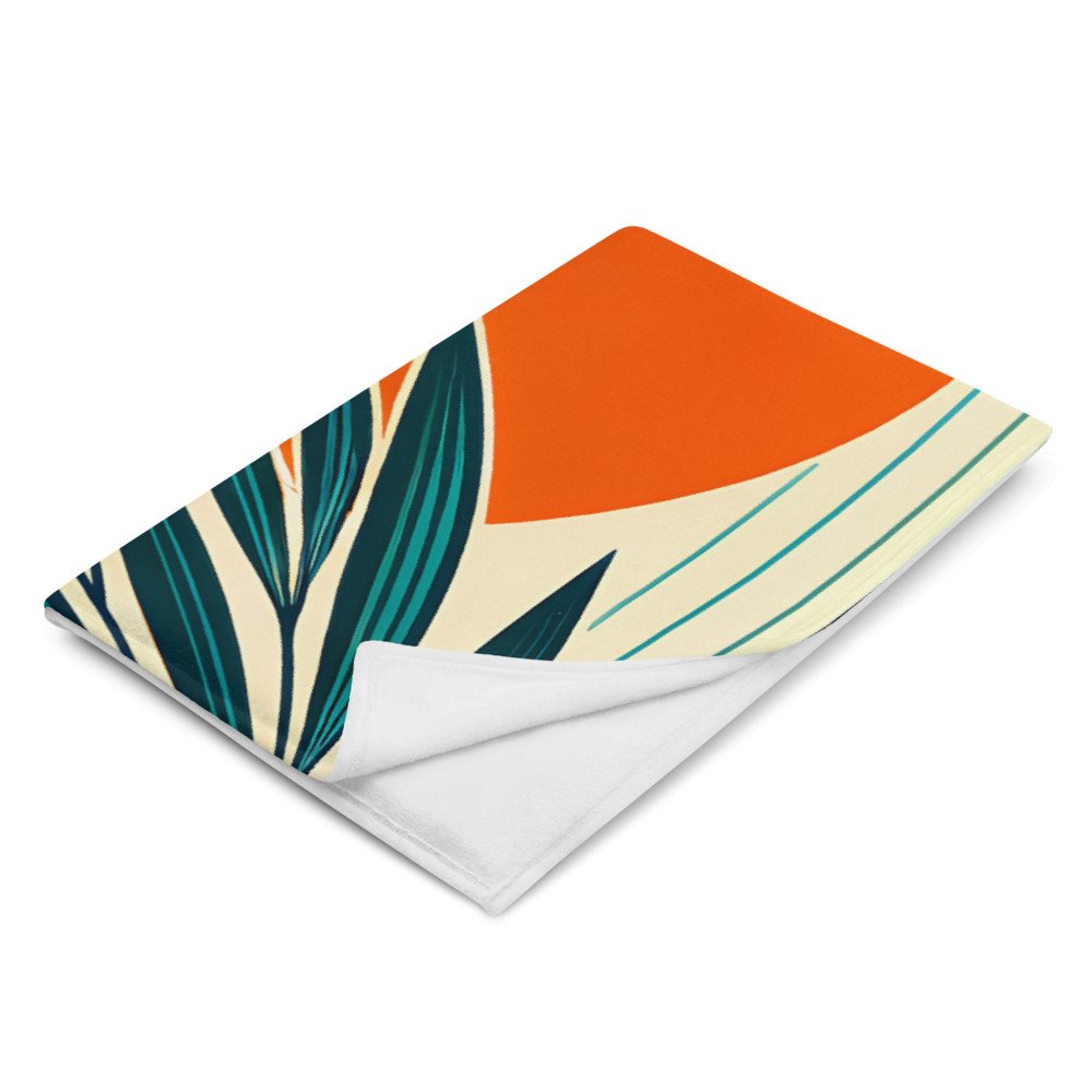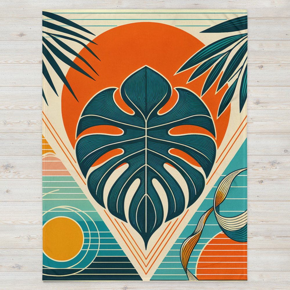 Geometric Monstera Leaf Sunset — Throw Blanket
