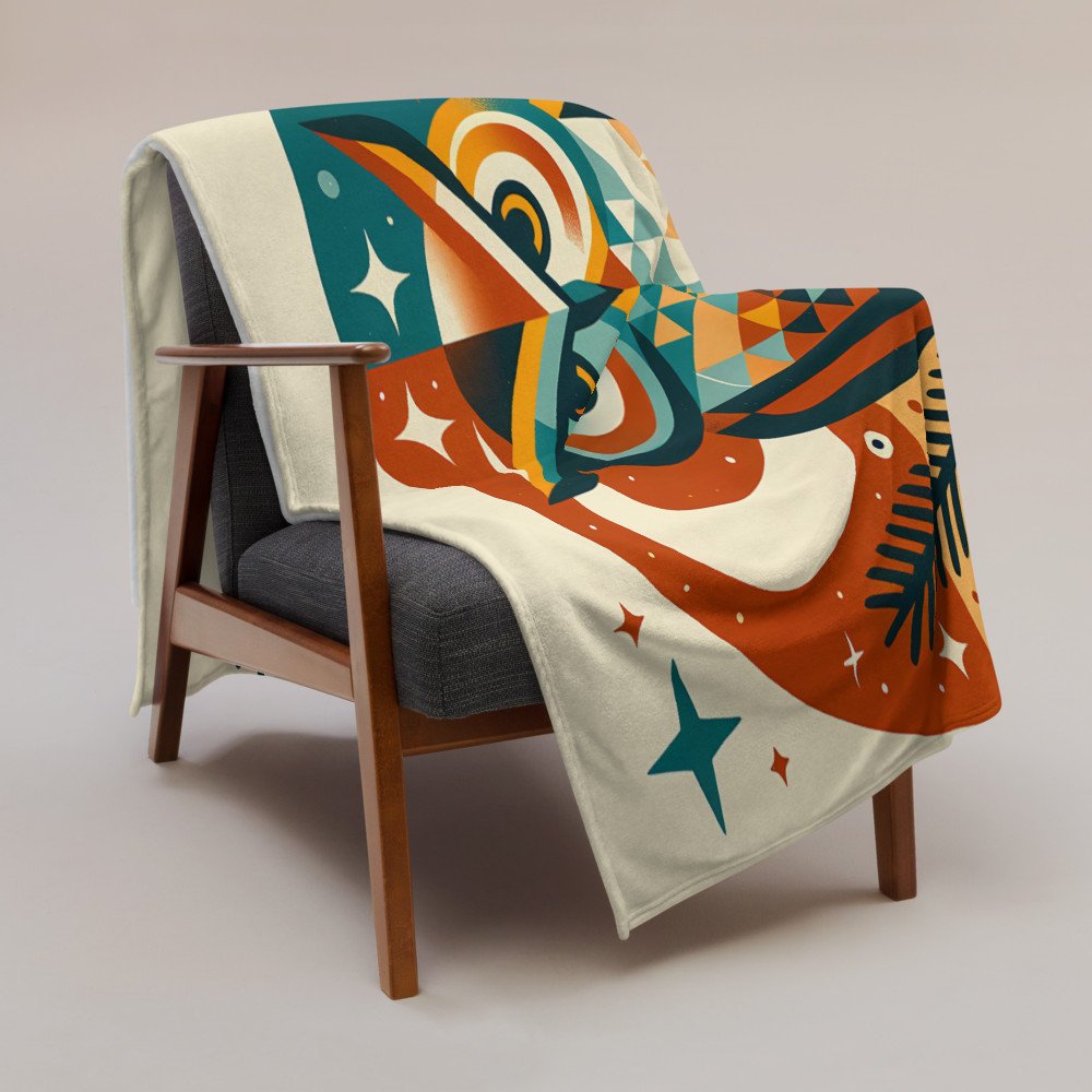 Geometric Owl Under Moon and Stars — Throw Blanket