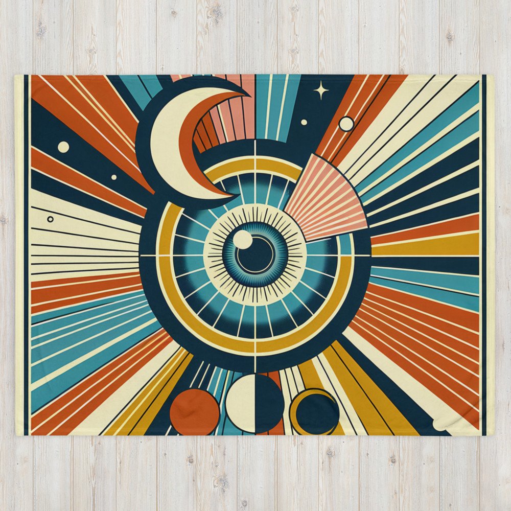 Geometric Eye with Crescent Moon Rays — Throw Blanket