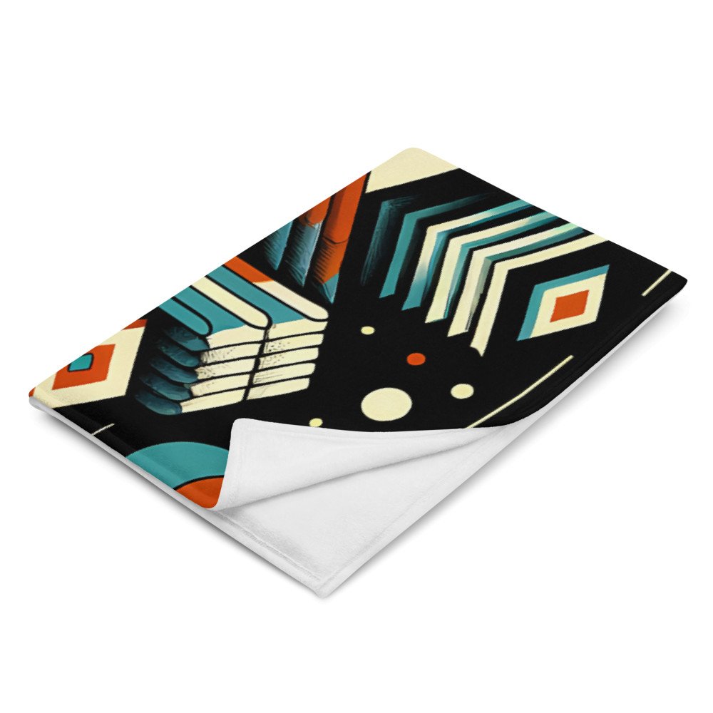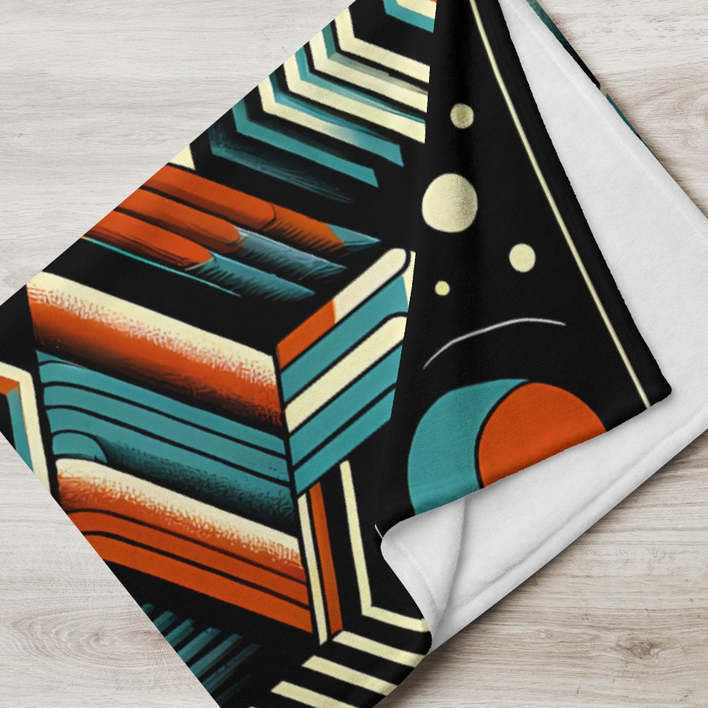 Retro Geometric Space Cubes in Teal and Orange — Throw Blanket