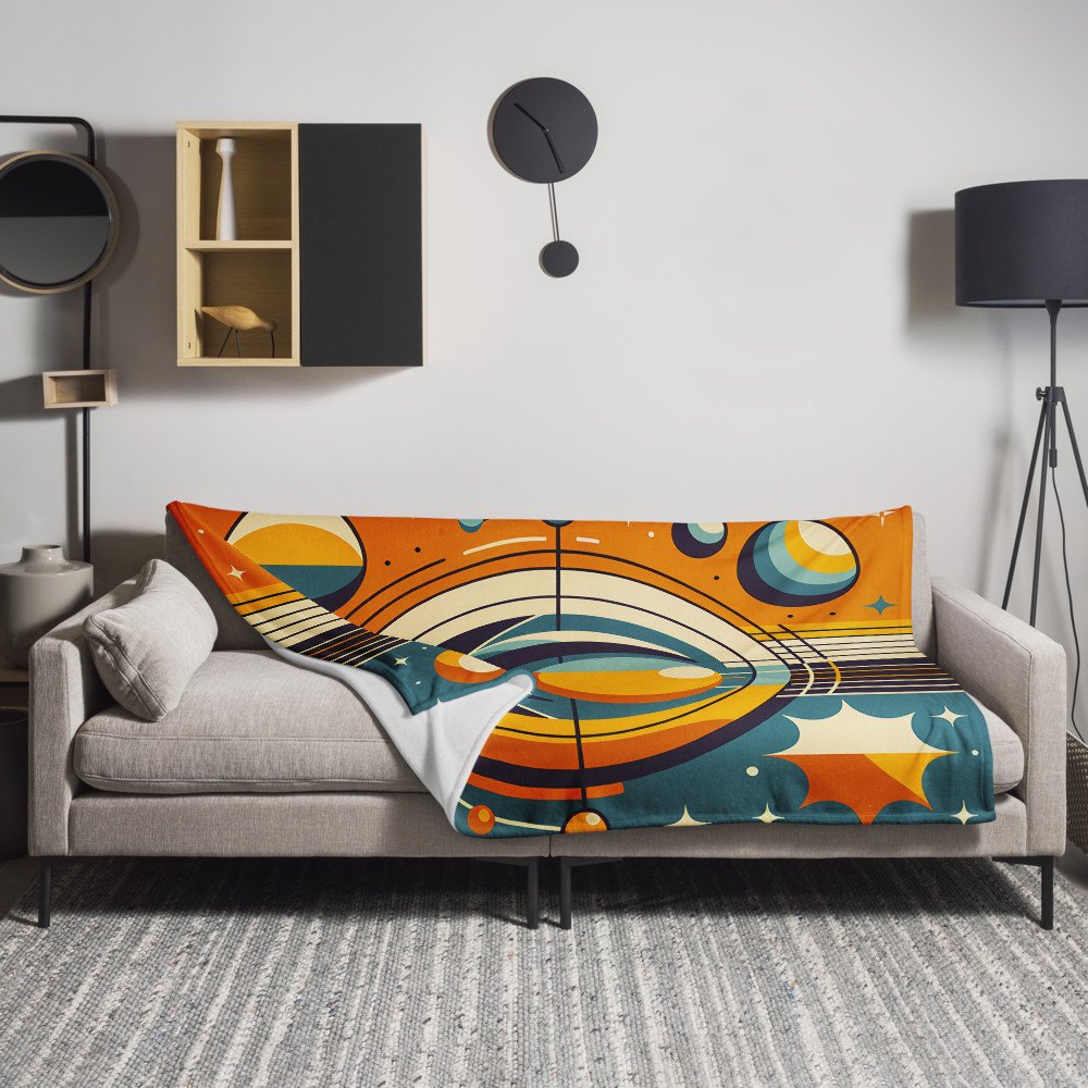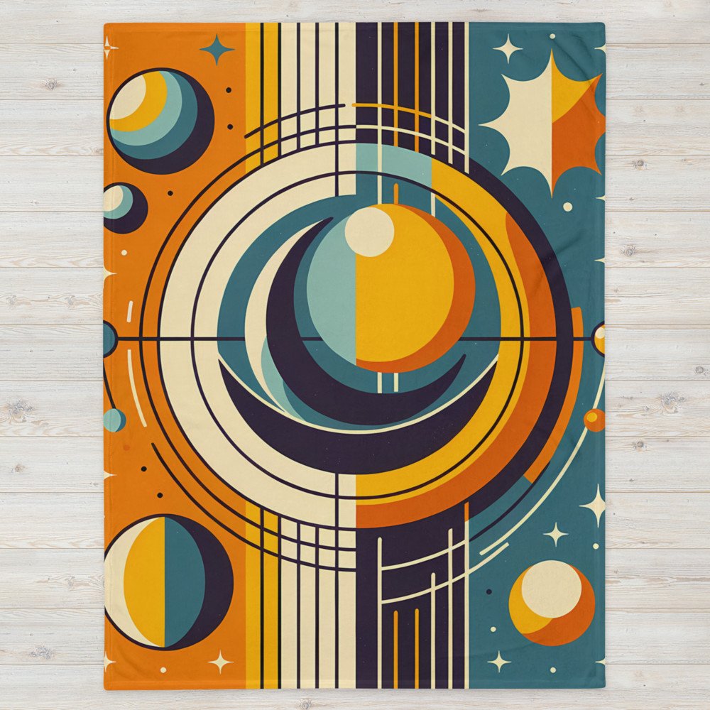 Geometric Sun and Moon Orbit Illustration — Throw Blanket