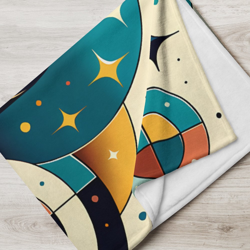 Geometric Rocket Launch in Retro Space Circles — Throw Blanket