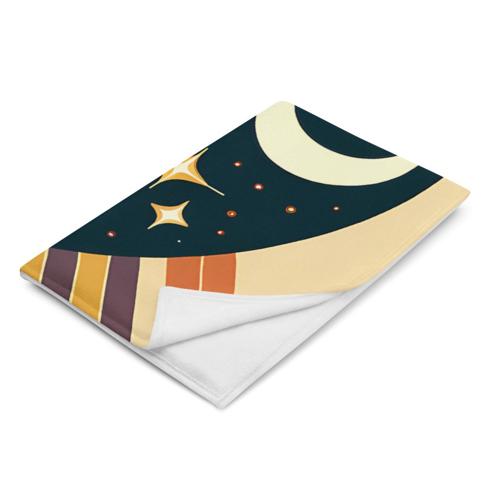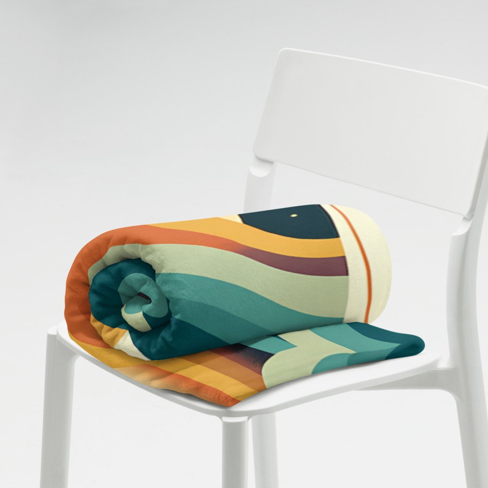 Retro Rocket Launch Over Mountains and Stars — Throw Blanket