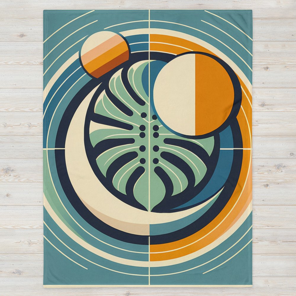 Geometric Monstera Leaf Circles — Throw Blanket