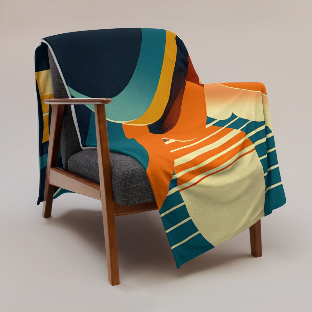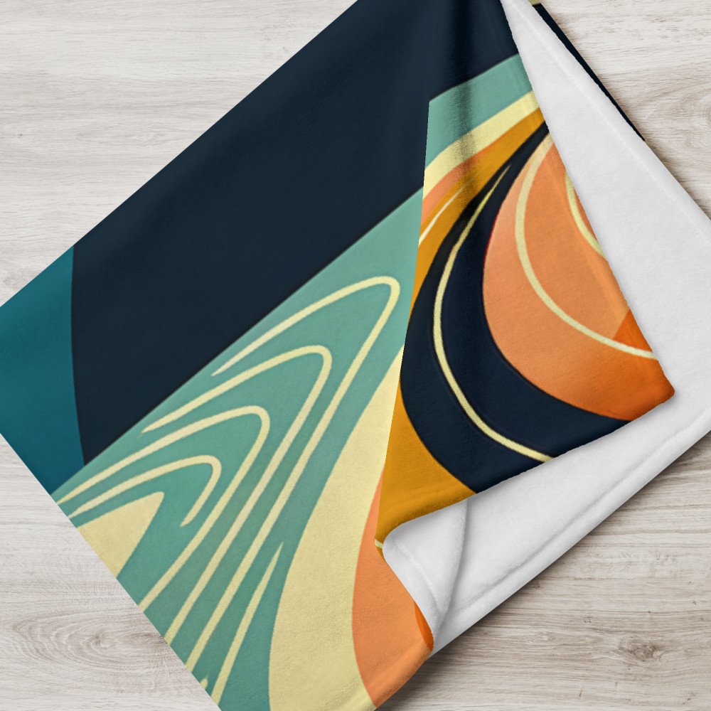 Geometric Sun Over Layered Mountains — Throw Blanket