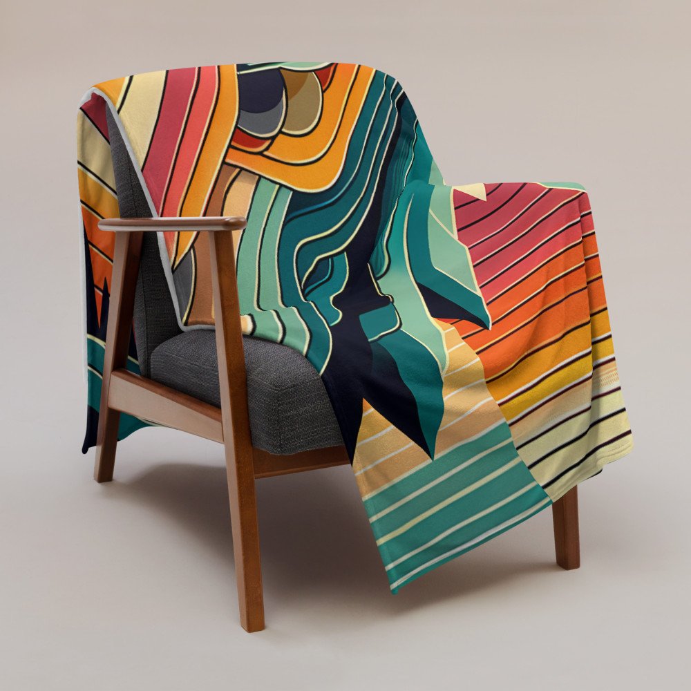 Geometric Mountains Sunset with Layered Valley Lines — Throw Blanket