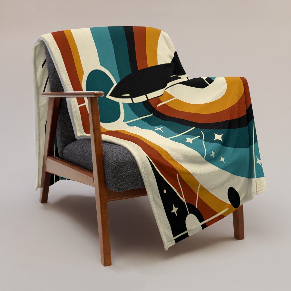 Retro Geometric Rocket Launch — Throw Blanket
