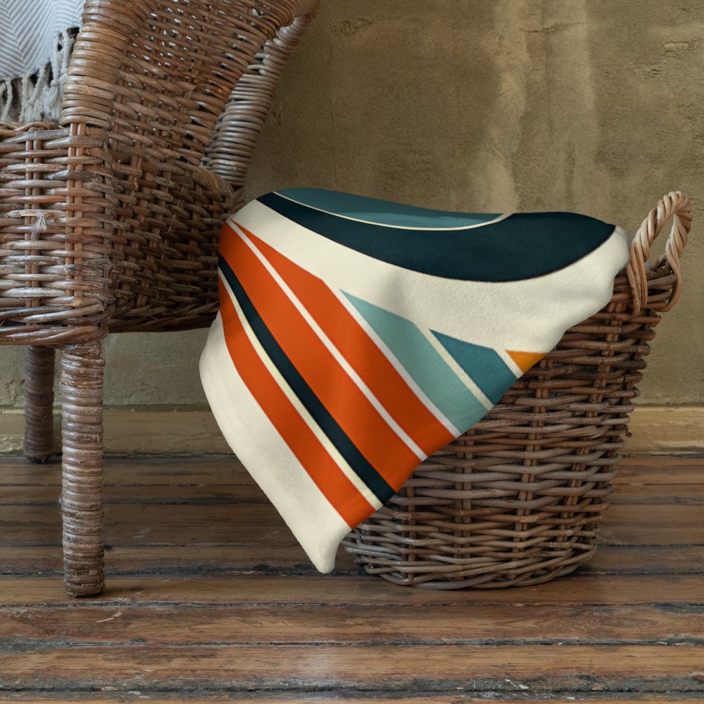 Geometric Sailboat at Sunset in Colour Block Stripes — Throw Blanket