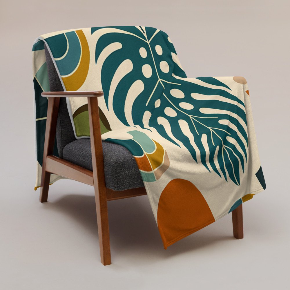 Geometric Monstera Leaf Abstract — Throw Blanket