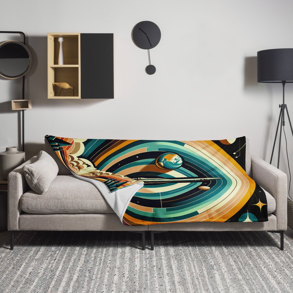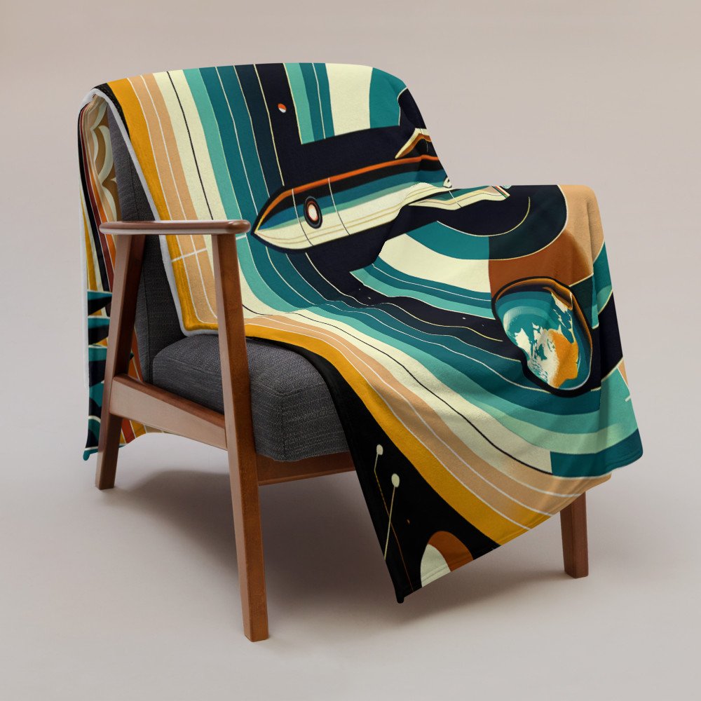 Retro Rocket Launch Geometric Space Illustration — Throw Blanket