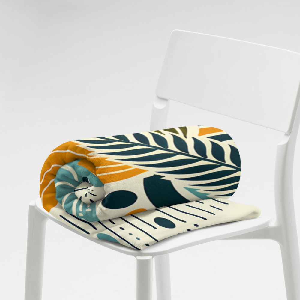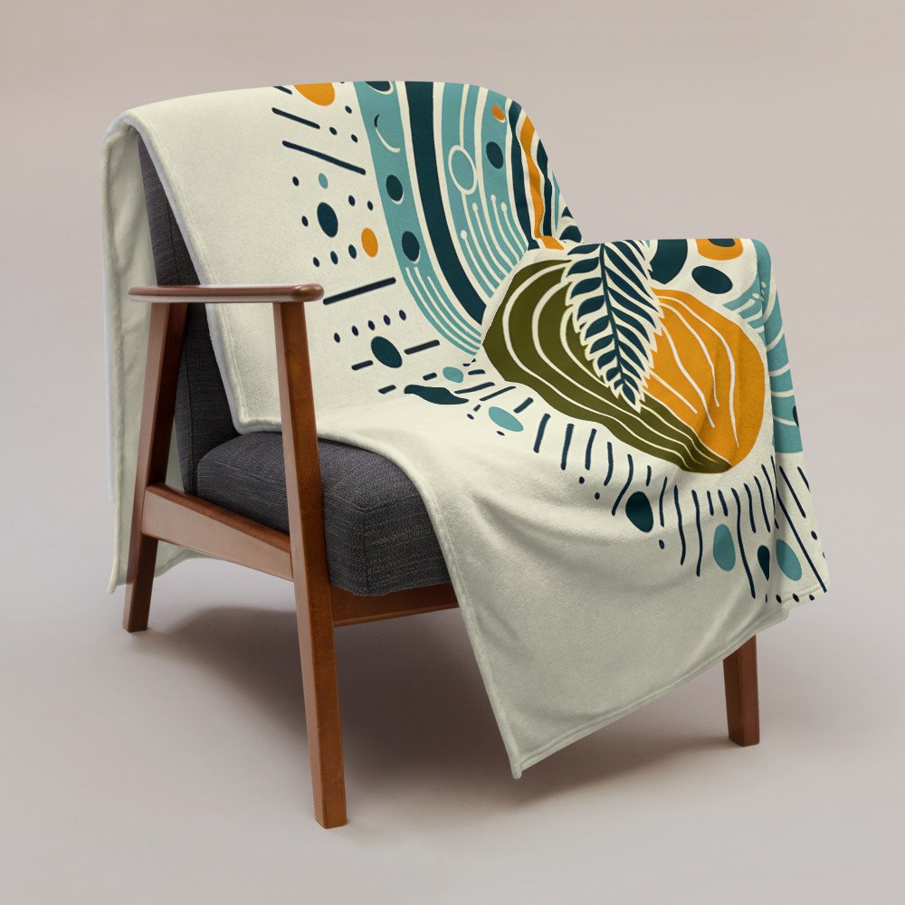 Teal SolsticeAbstract Botanical Leaf and Sunburst Design — Throw Blanket