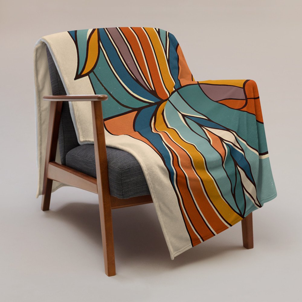 Abstract Sun Face Line Illustration — Throw Blanket