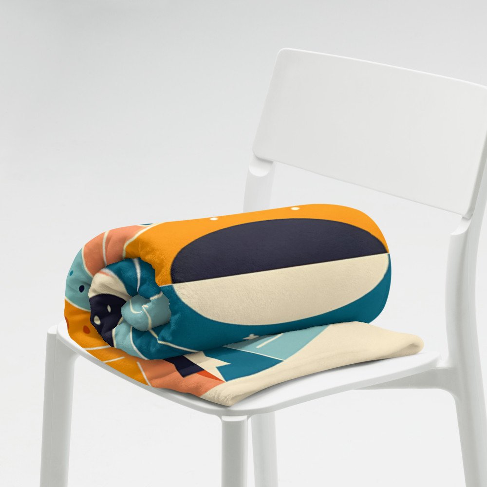 A circular celestial composition combines a split moon, radiant suns and orbiting stars in layered geometric bands. The balanced layout and bold teal, navy, peach and gold palette create a celestial minimal look with geometric moon details and abstract space energy.