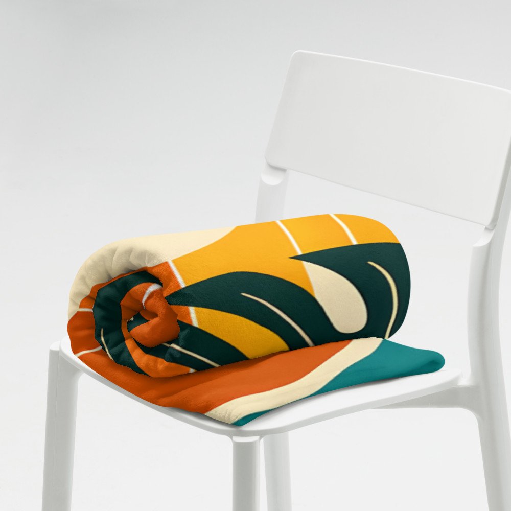 Abstract Botanical Sun and Monstera — Throw Blanket