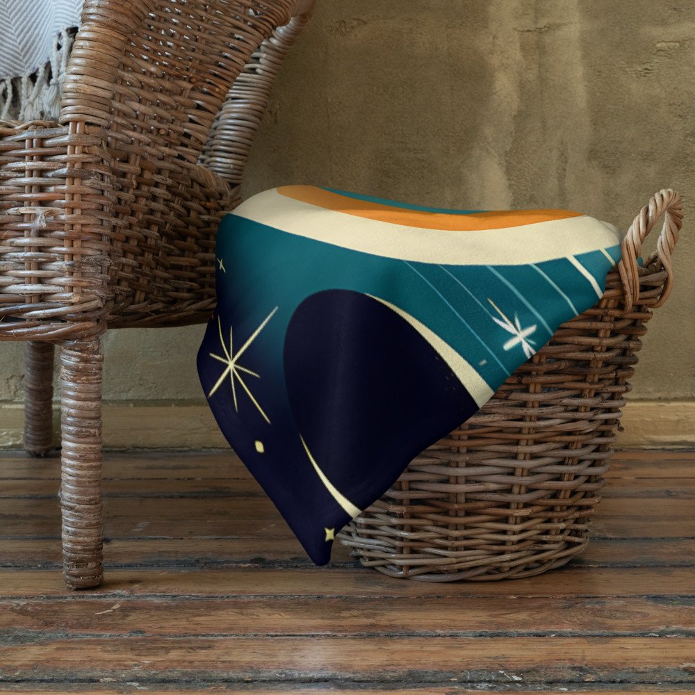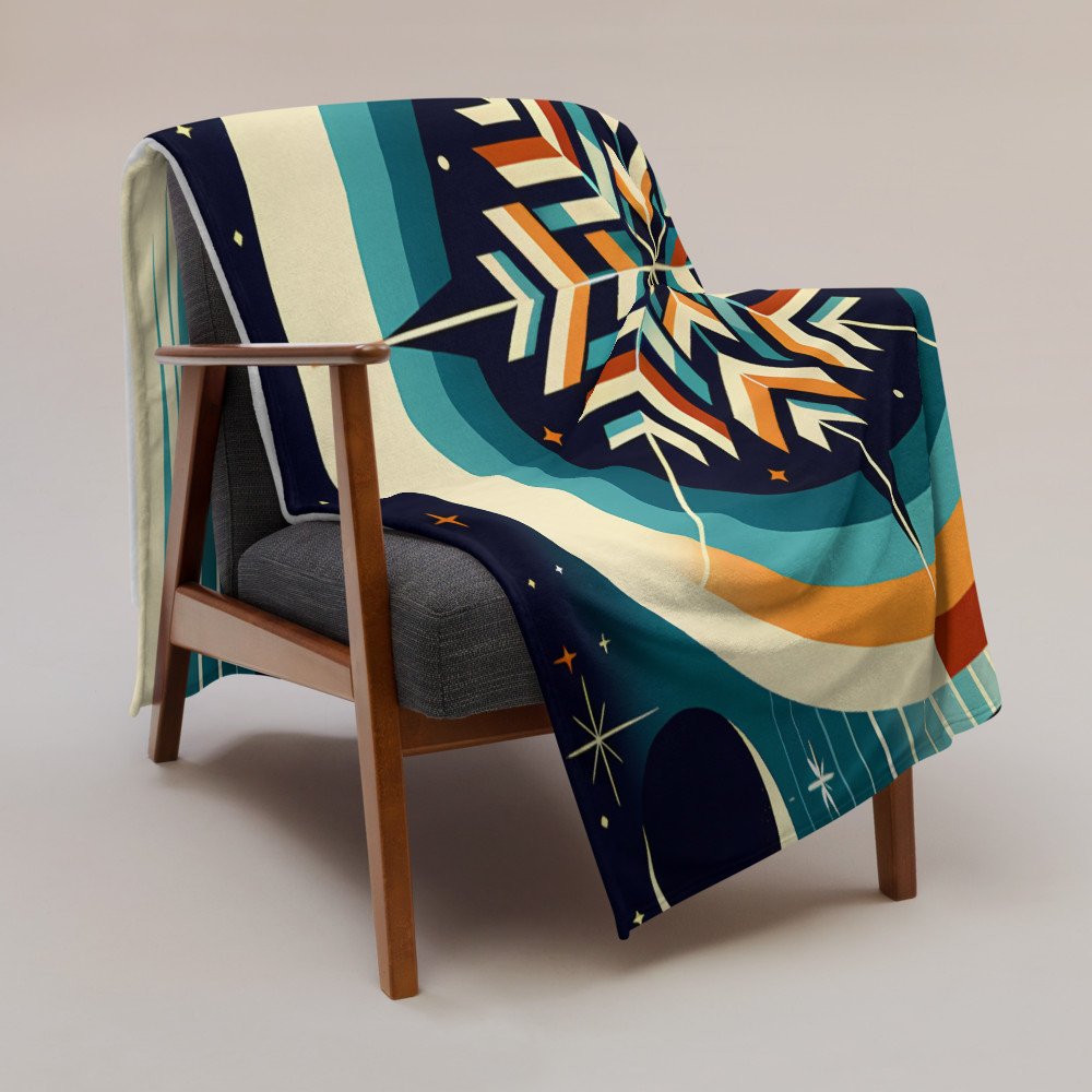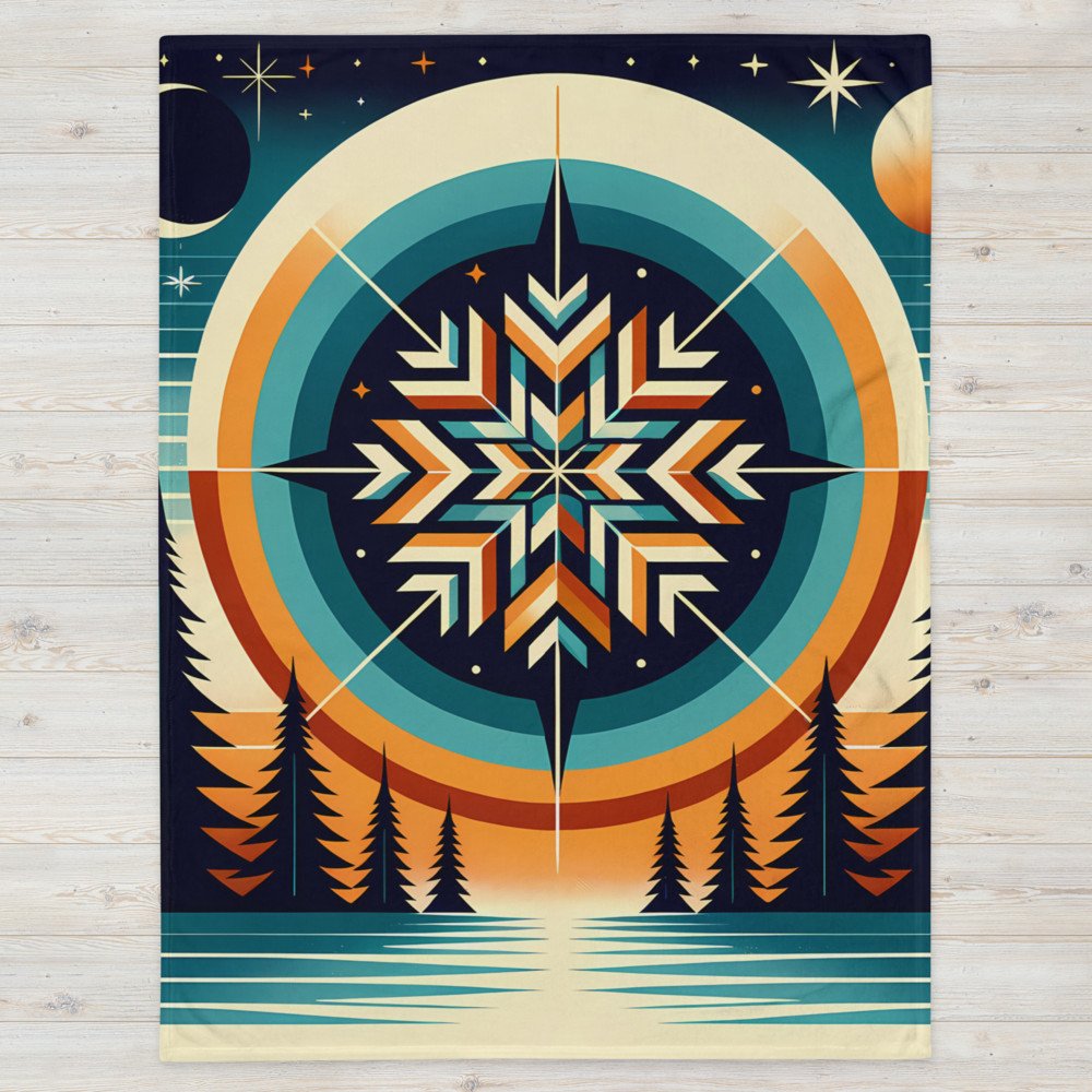 Geometric Snowflake Over Winter Forest Lake — Throw Blanket