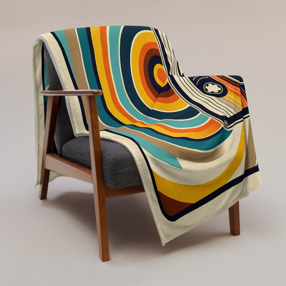Retro cassette with geometric rainbow lines — Throw Blanket