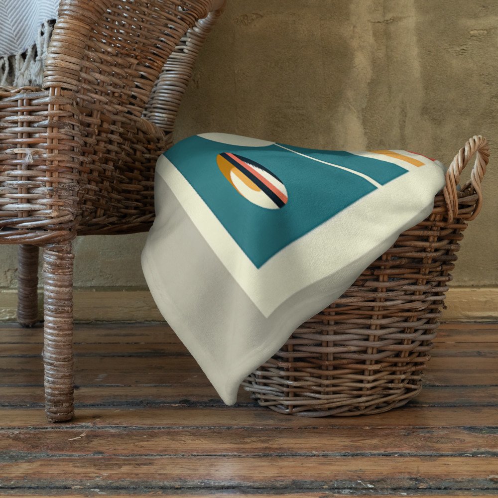 Retro Futuristic City Skyline with Speeding Car — Throw Blanket
