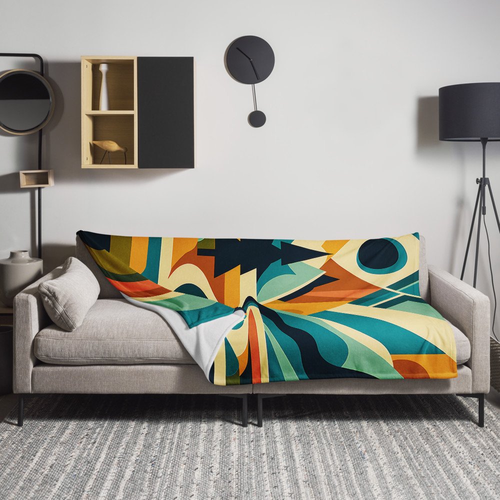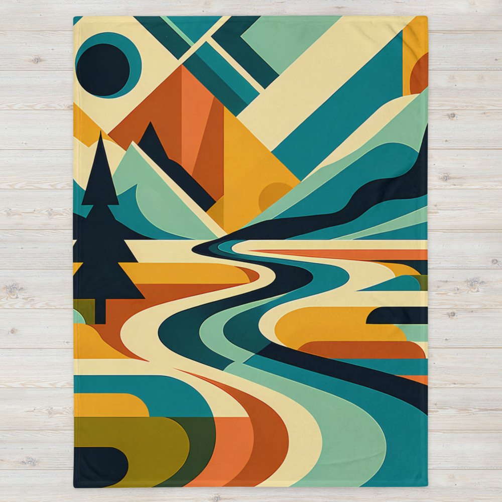 Geometric Mountain River Landscape — Throw Blanket