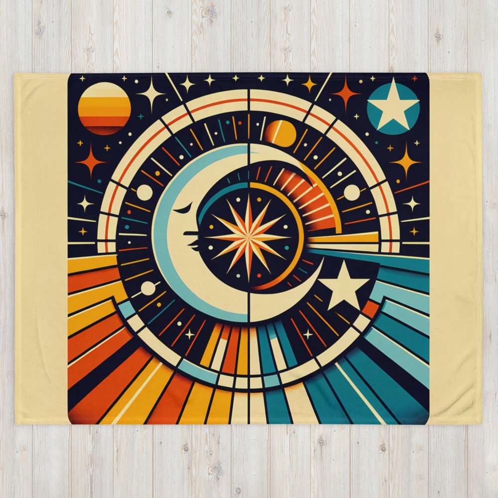 Geometric Celestial Moon and Starburst — Throw Blanket
