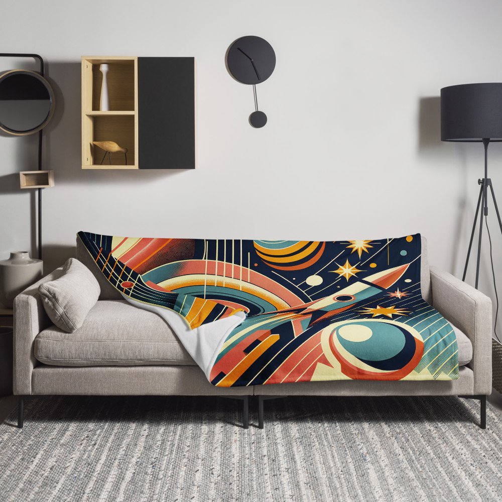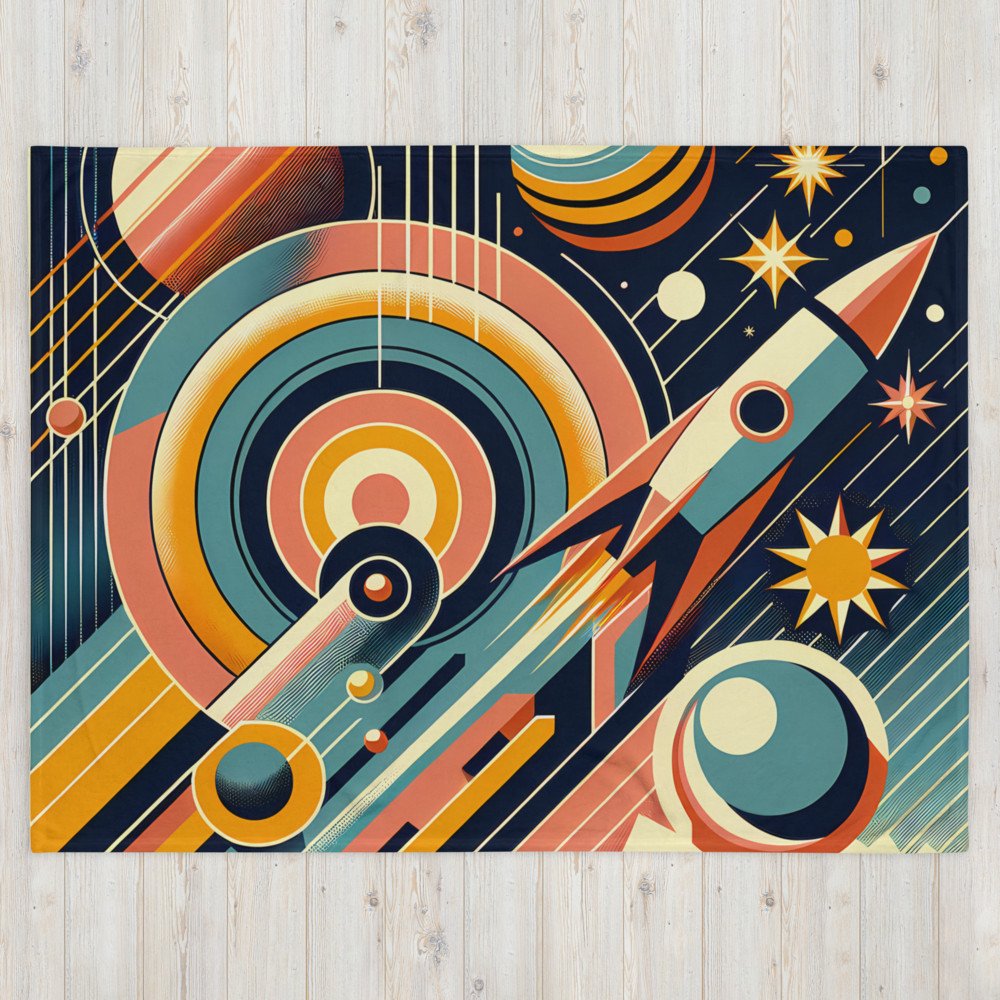 Geometric Rocket in Retro Space — Throw Blanket