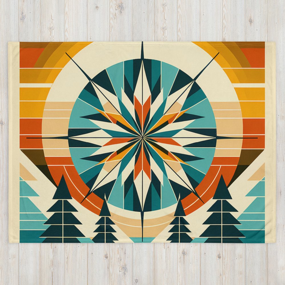 Geometric Snowflake Over Winter Pines — Throw Blanket