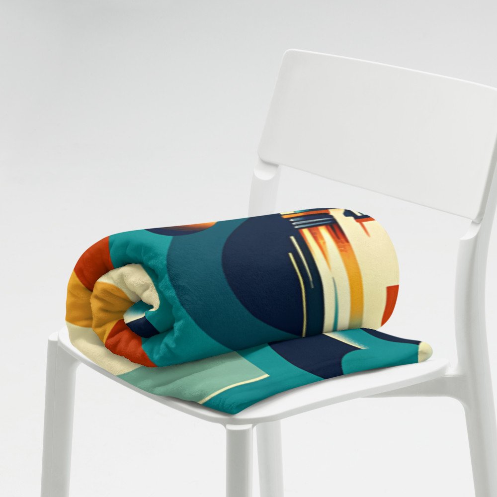 Retro rocket launch with planets and concentric rings — Throw Blanket