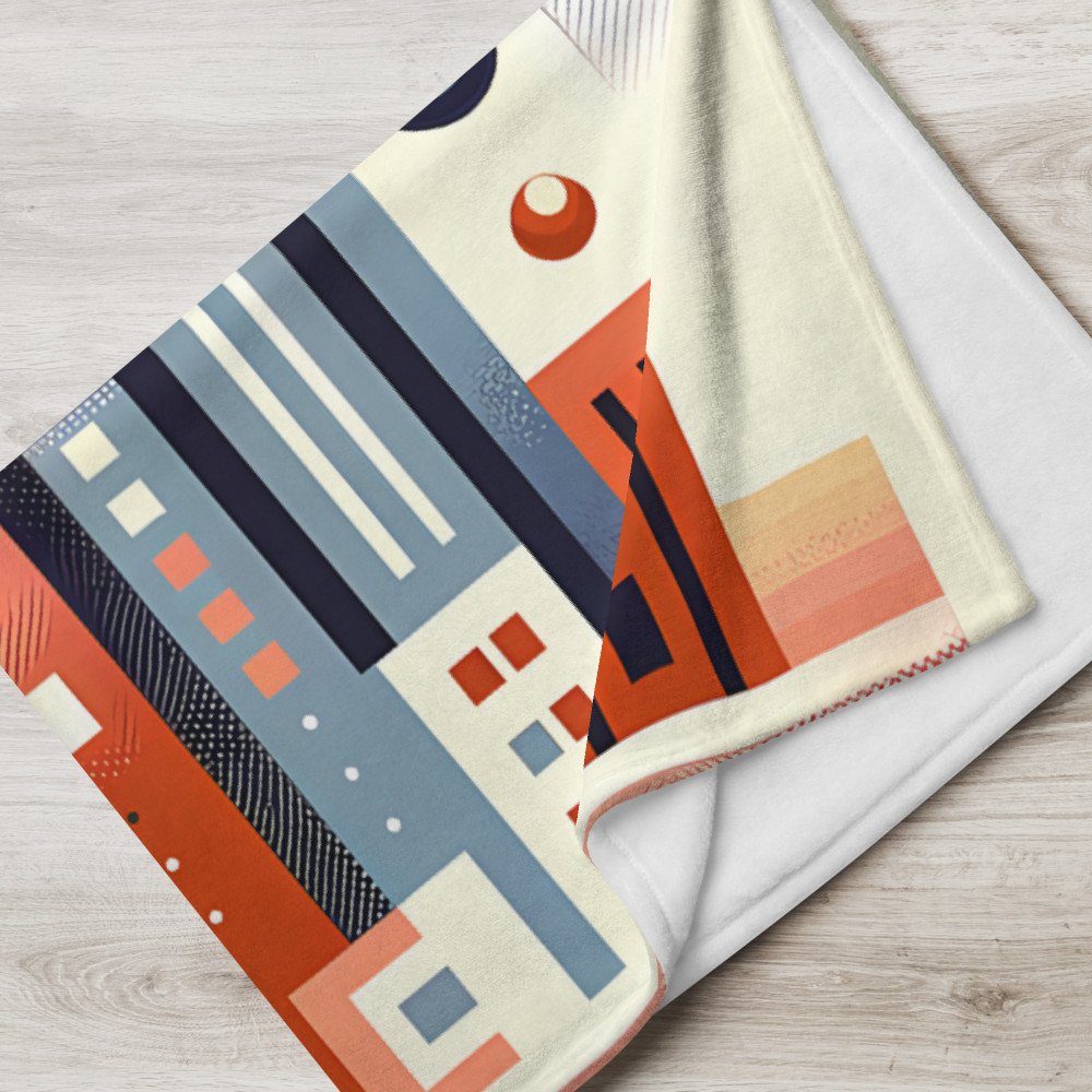 Retro Geometric Space Cityscape with Giant Planet — Throw Blanket