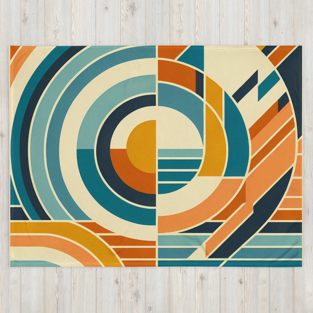 A stylised number nine is built from concentric circles, sharp angles and segmented bands in teal, navy, orange and cream. The composition blends bold typography with type and shapes, creating an abstract lettering look with a clean editorial style.