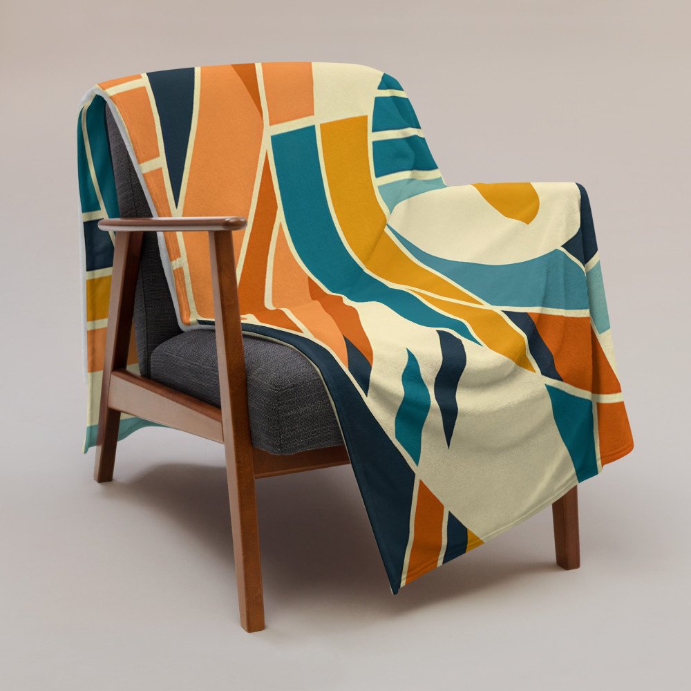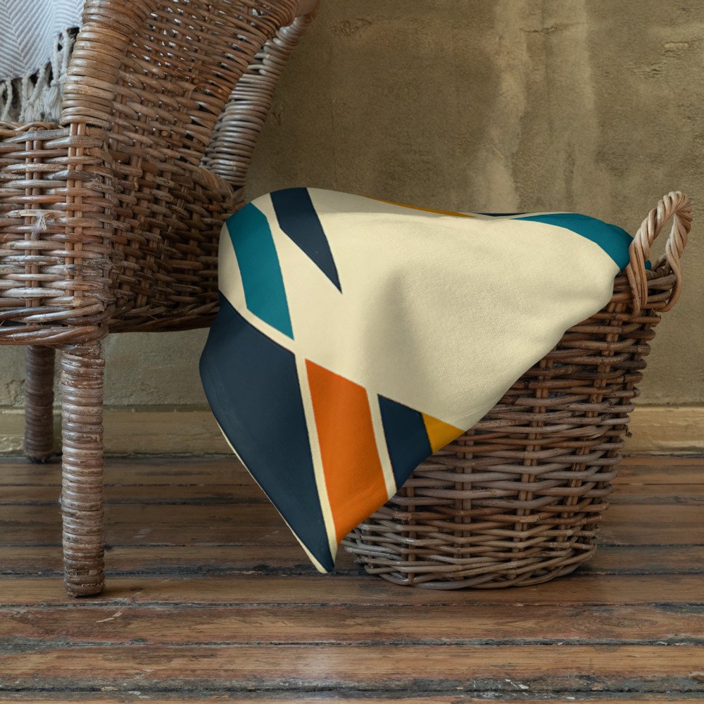 Geometric Sunset Sailboat Over Colour-Block Waves