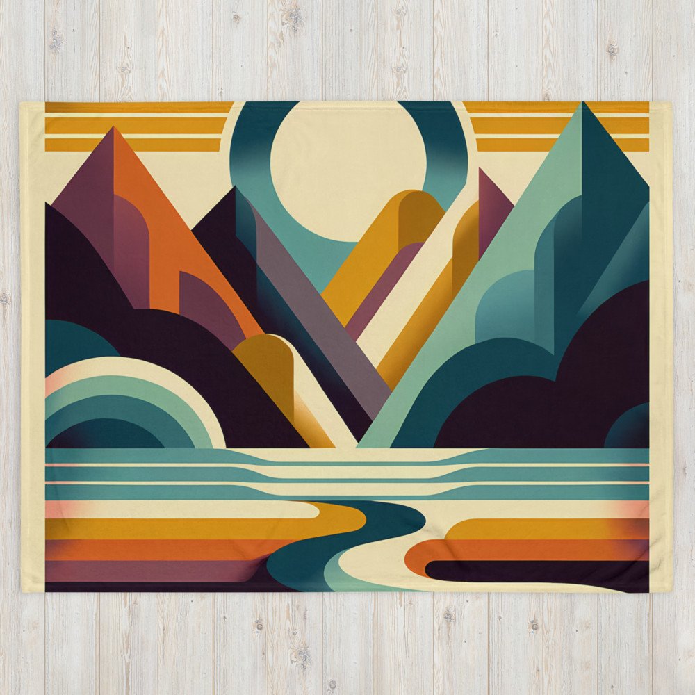 Geometric Mountain Sunset Horizon — Throw Blanket