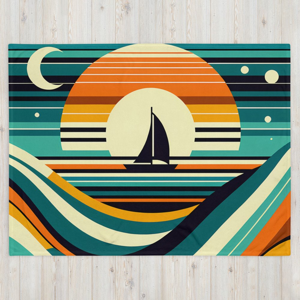 Geometric Sunset Sailboat — Throw Blanket