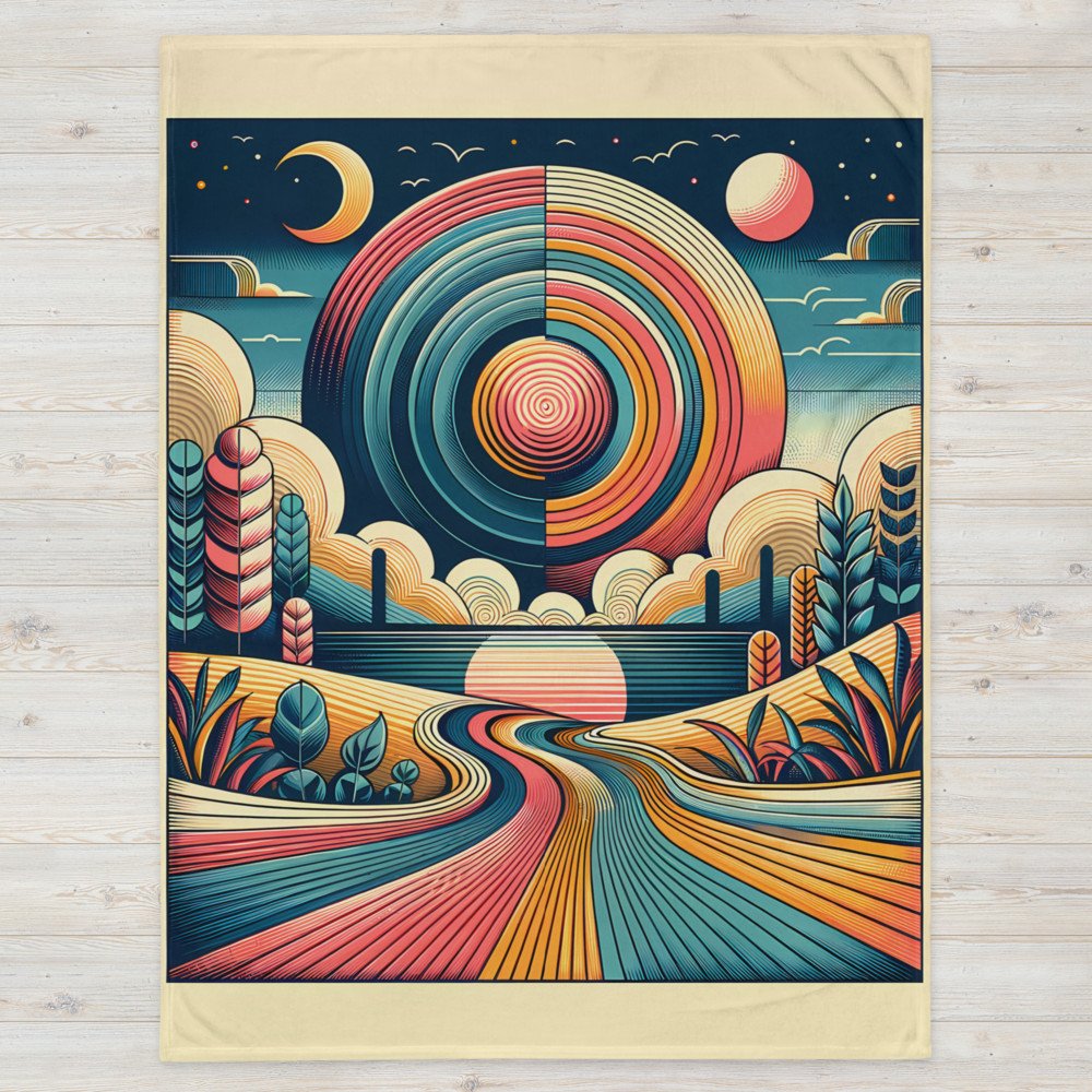 Retro Geometric Sunset Landscape with Spiral Sun — Throw Blanket