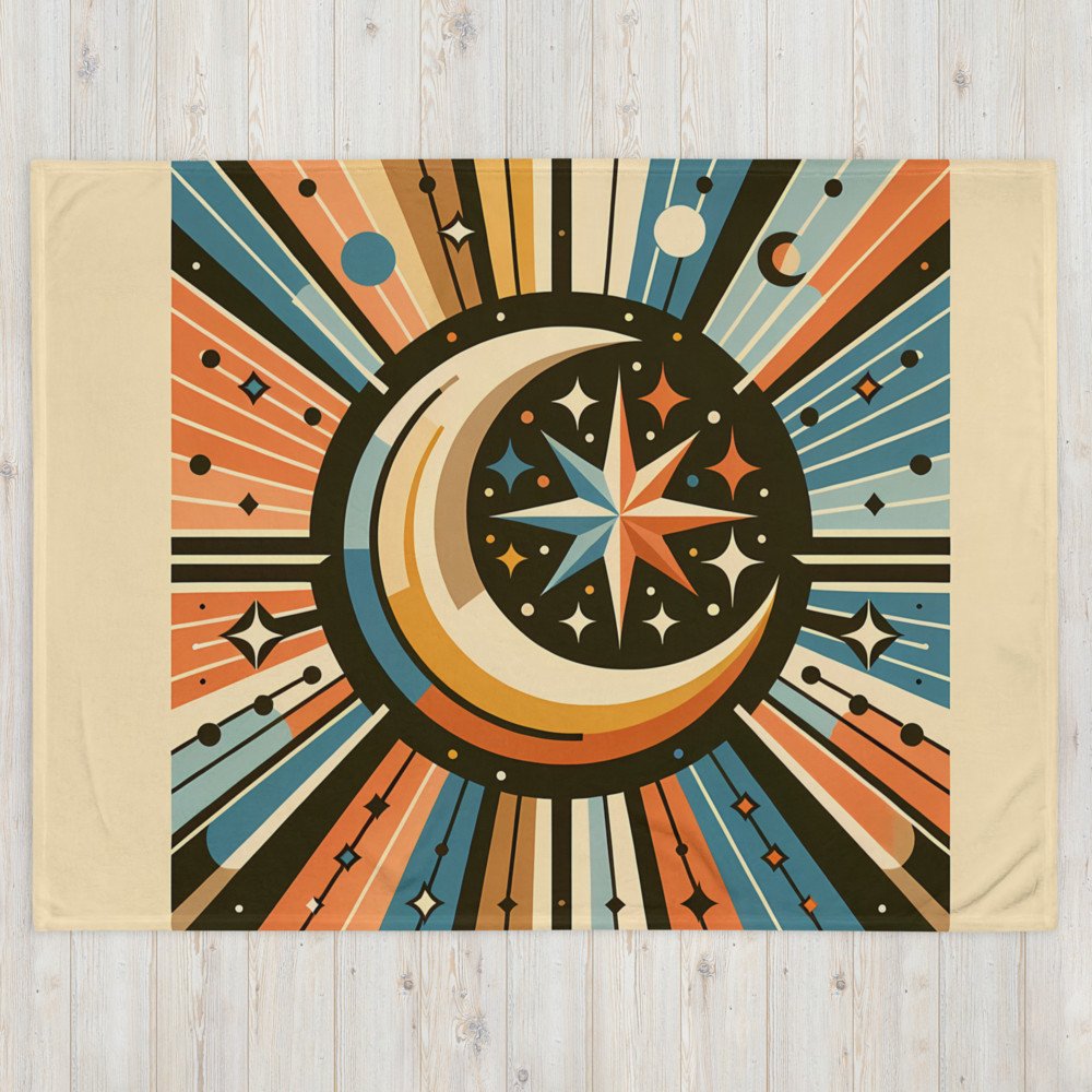 Geometric Crescent Moon and Starburst — Throw Blanket
