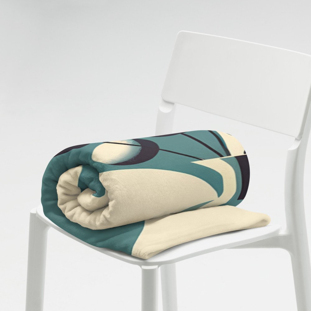The soft sherpa fleece of this throw is printed with the warm, balanced geometry of arches and organic shapes. It’s a cosy, textured way to display the serene teal and burnt orange art.