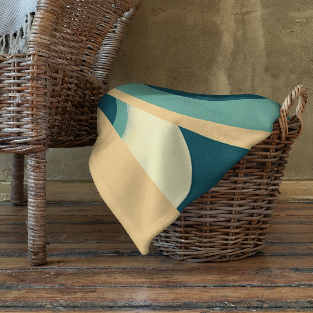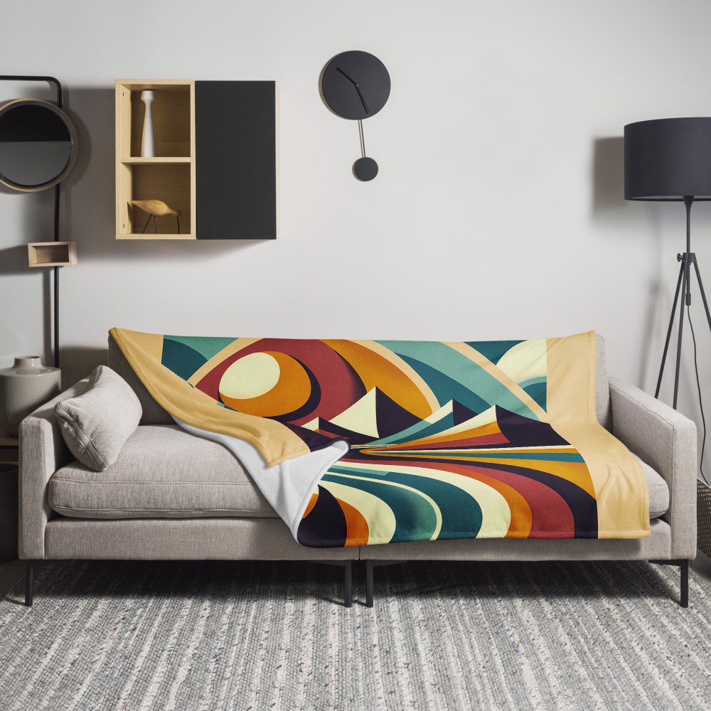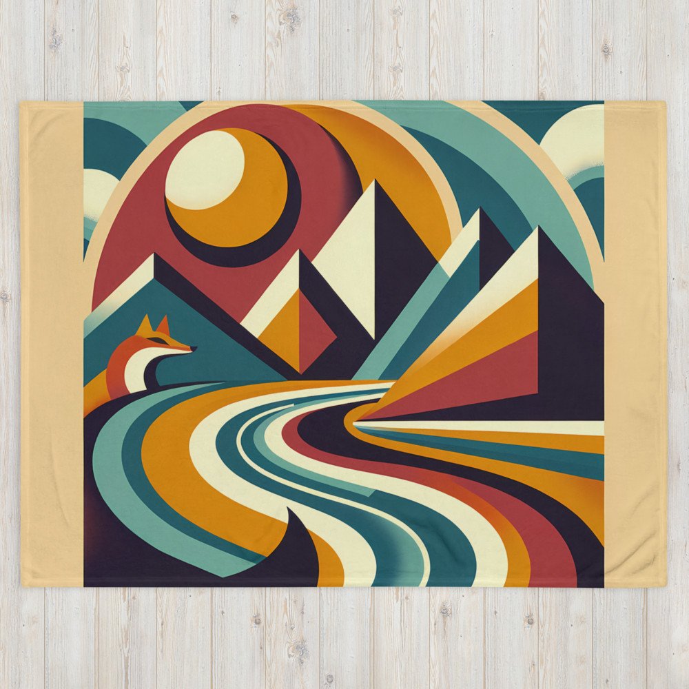 Geometric Mountain Landscape with Fox and Sun — Throw Blanket
