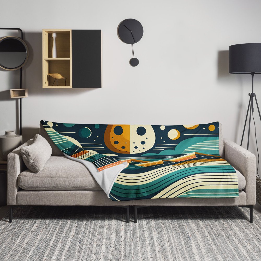 Geometric Moon Over Layered Mountains — Throw Blanket