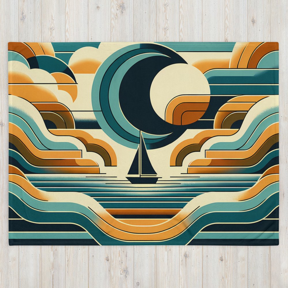 Geometric Sailboat at Crescent Moon Sea — Throw Blanket