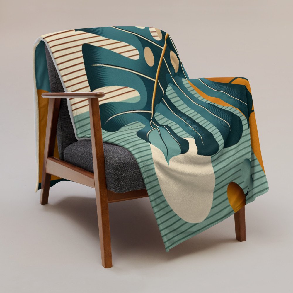 Cypress AriaGeometric Monstera Leaf Abstract — Throw Blanket