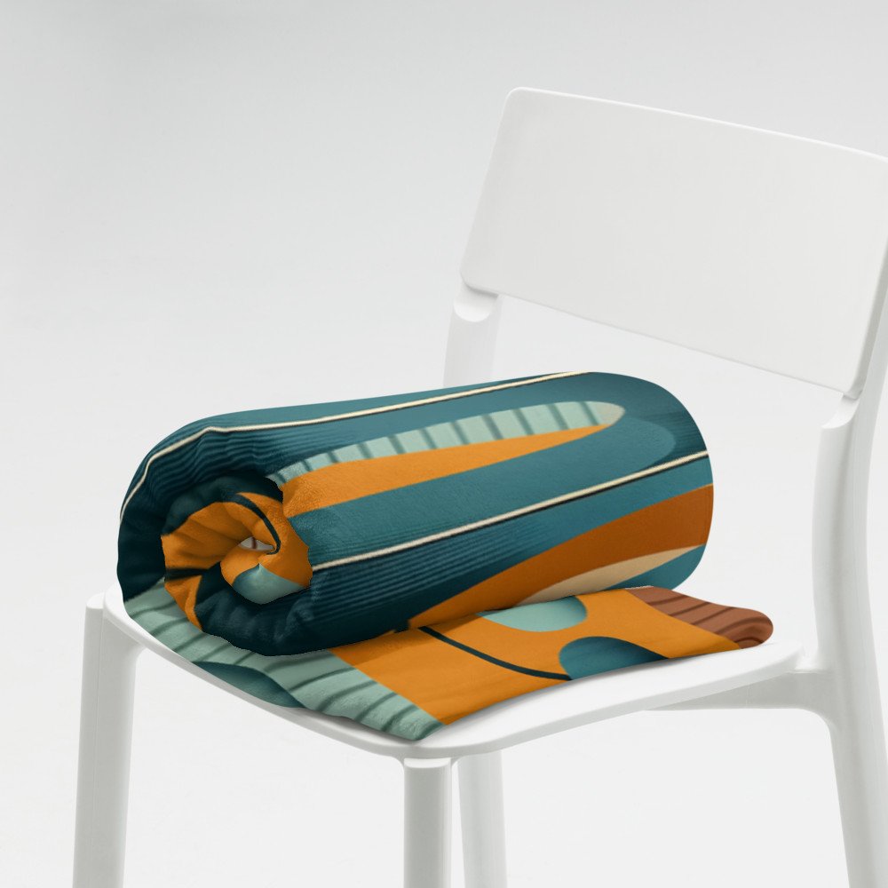 A soft sherpa fleece throw becomes a cosy canvas for the bold, abstract leaf motif. The geometric pattern in warm ochre and cool teal adds a tactile layer of modern texture to your lounge or bedroom.
