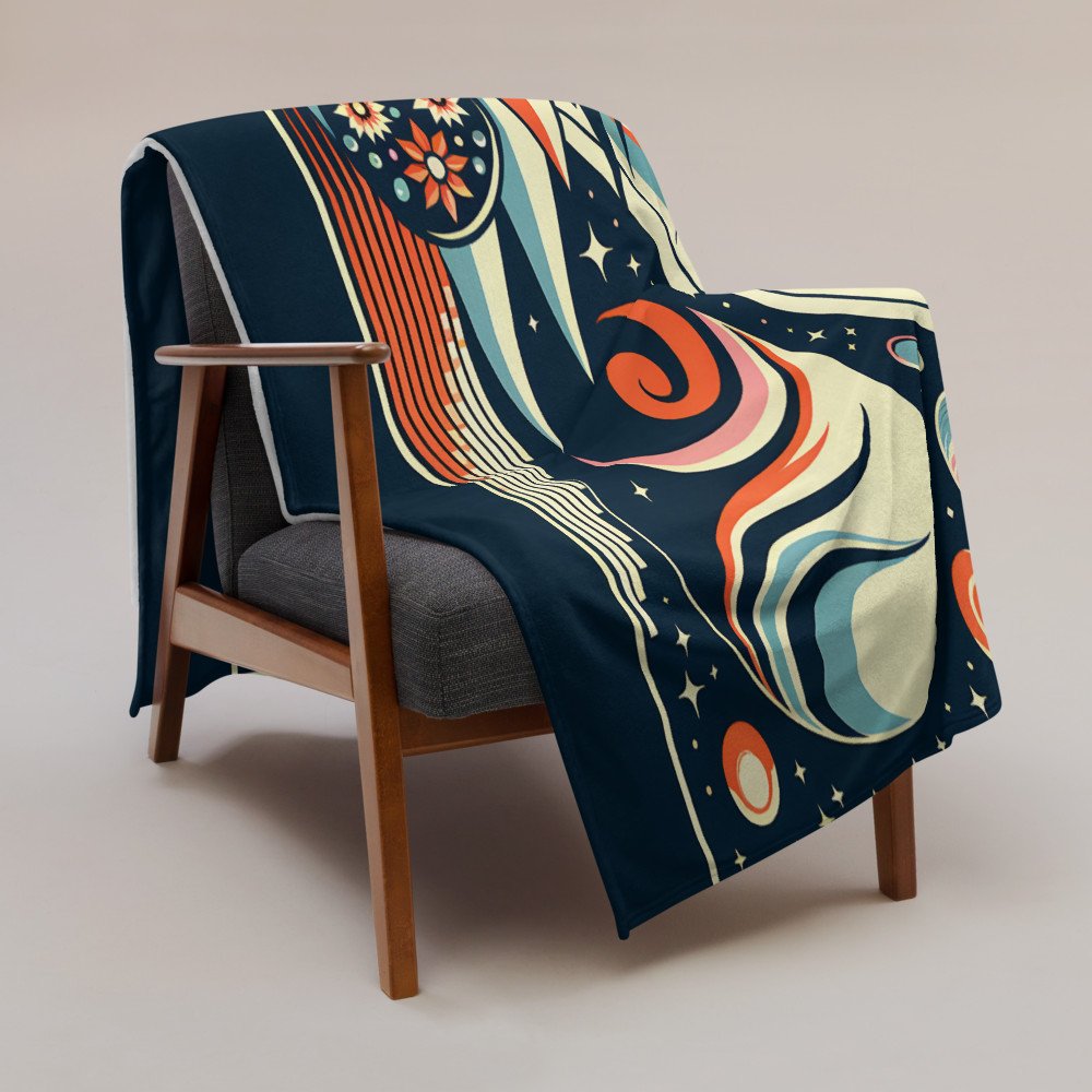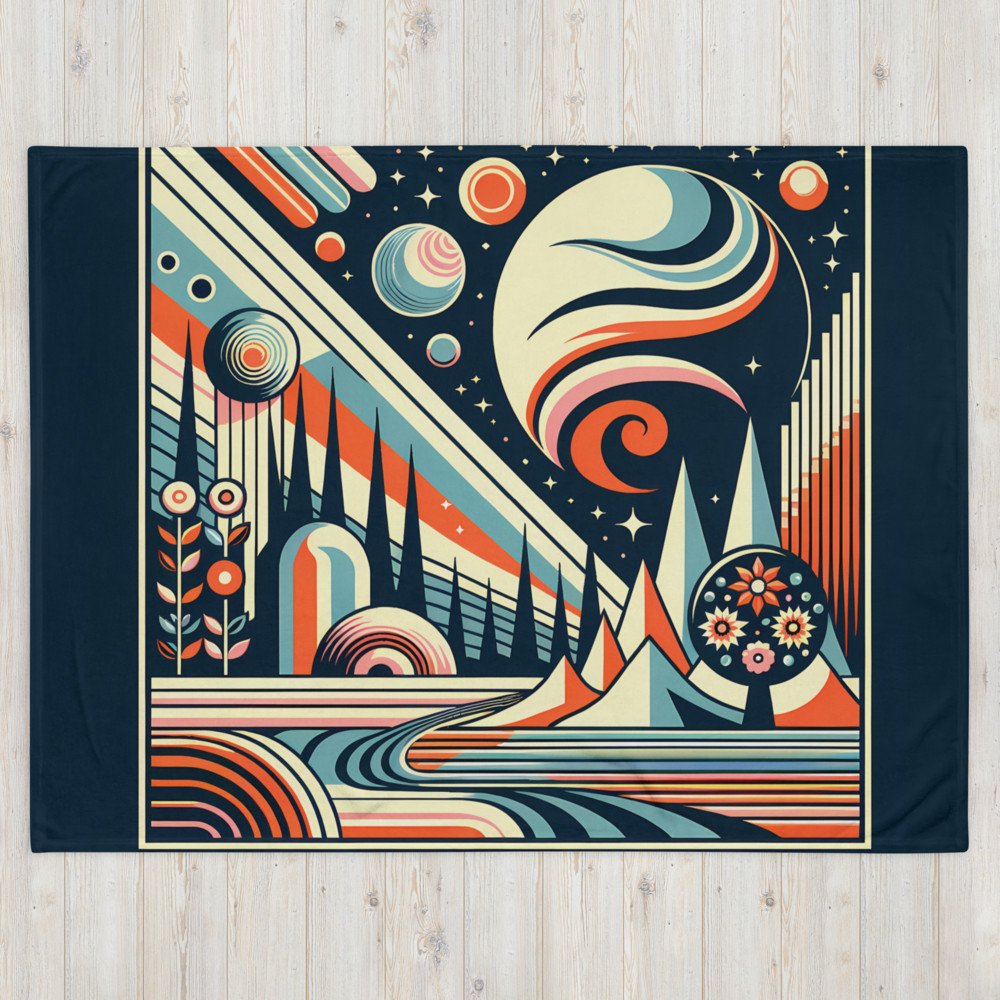 Saturnine HorizonRetro Space Landscape with Planets and Geometric Peaks — Throw Blanket