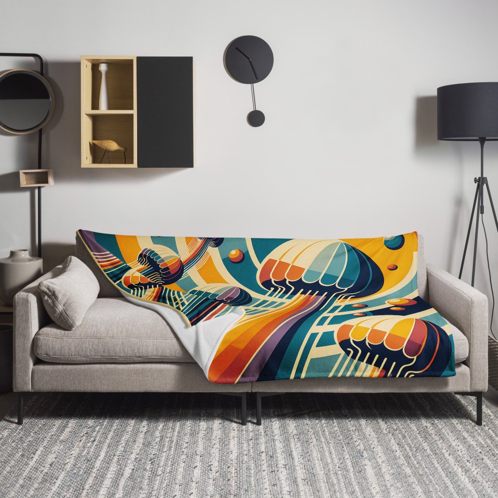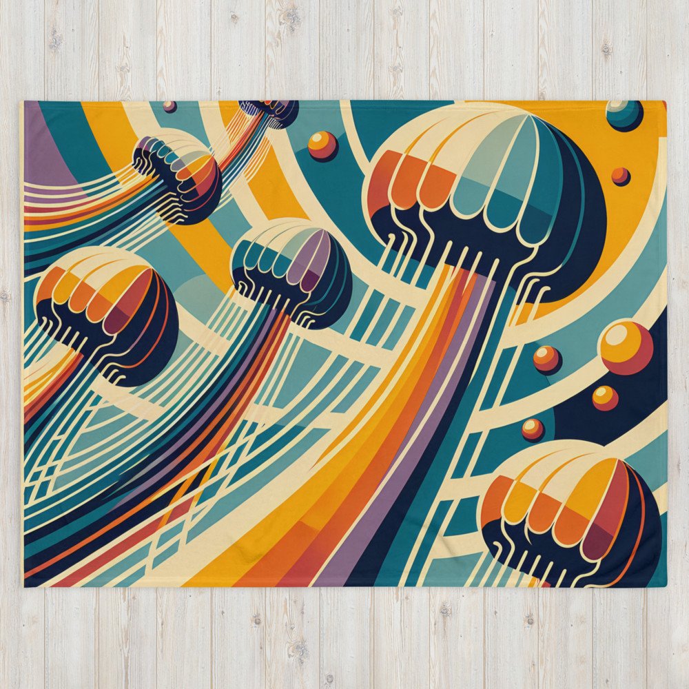Retro Jellyfish Gradient Waves — Throw Blanket