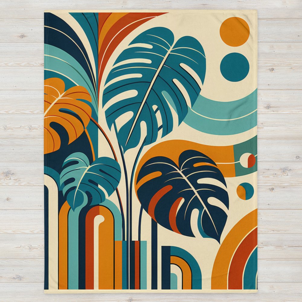 Abstract Monstera Leaves with Geometric Arches — Throw Blanket