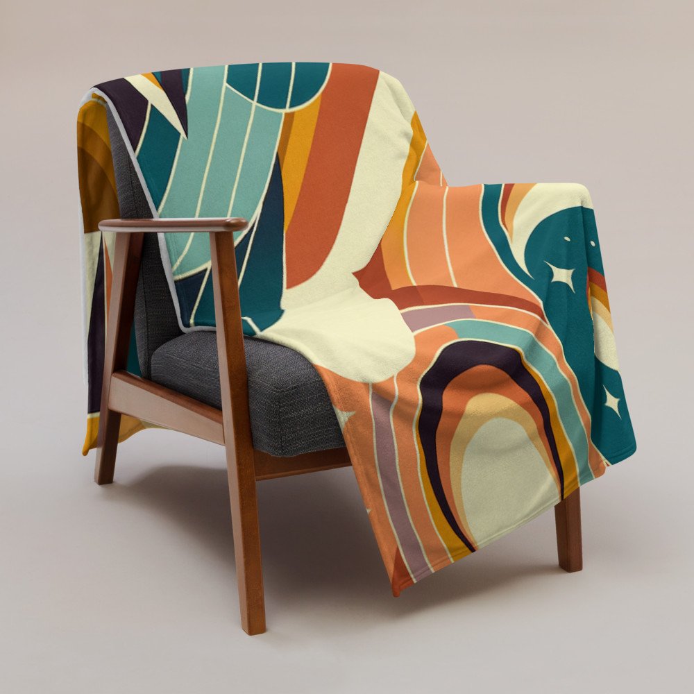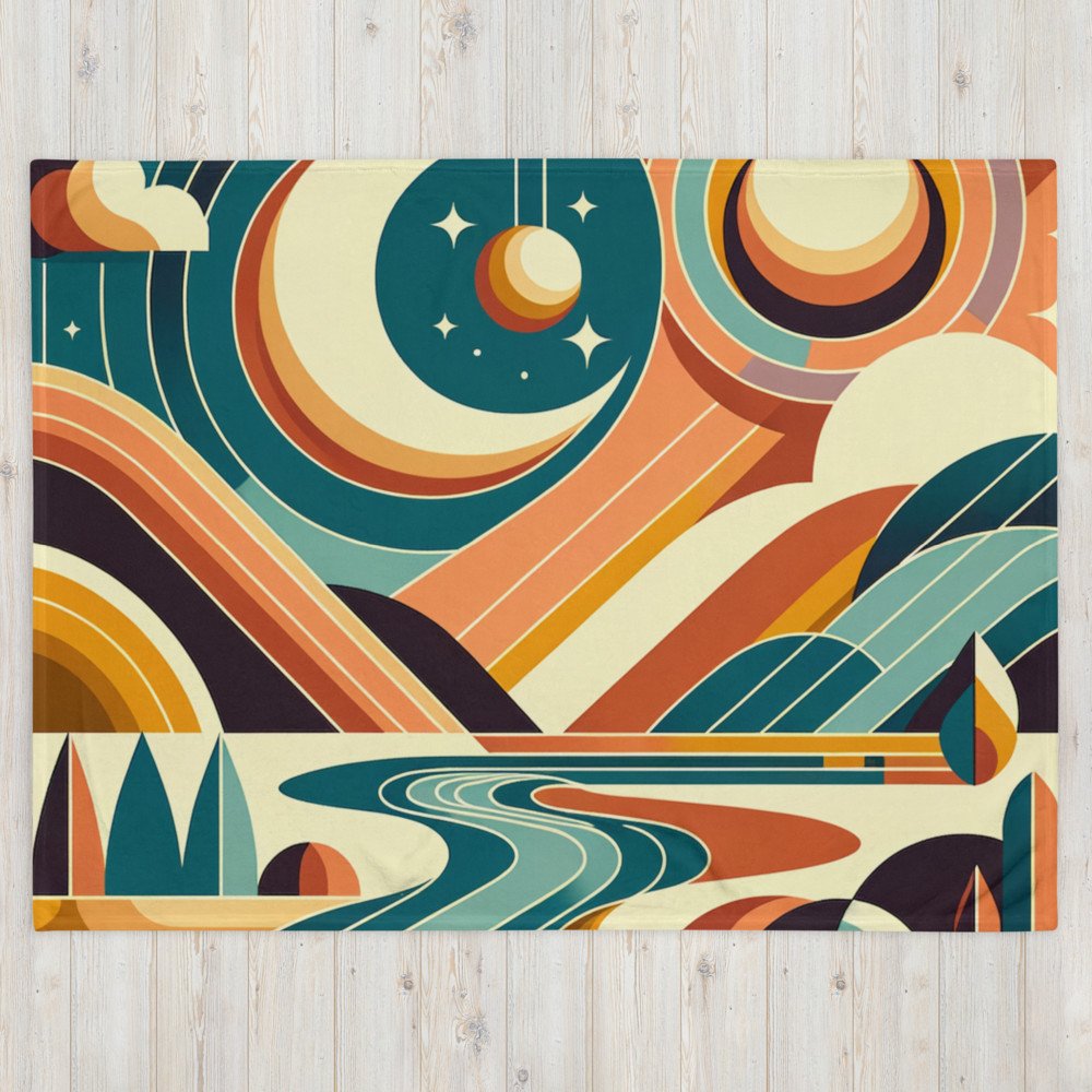 Retro Moon and Sun Abstract Landscape — Throw Blanket