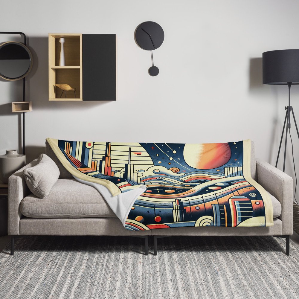 Retro Futuristic Space Cityscape with Planets — Throw Blanket