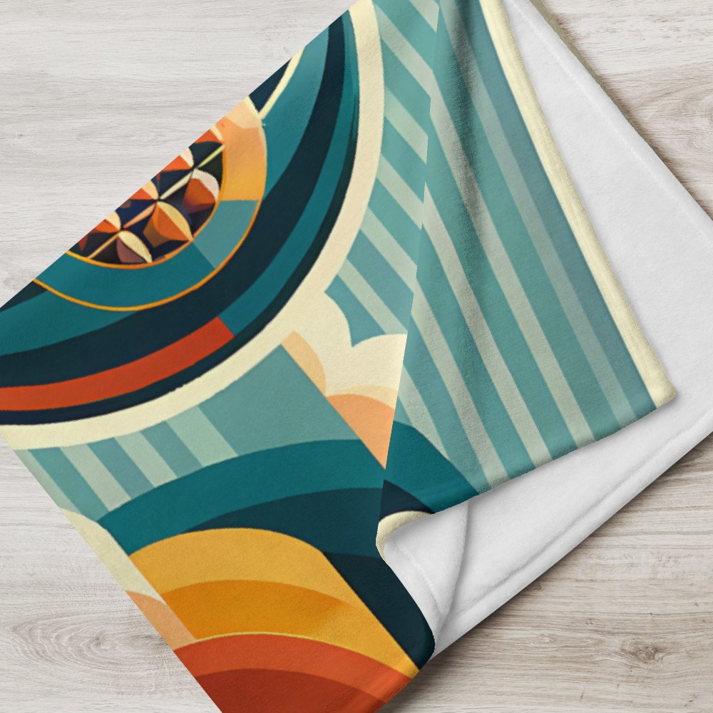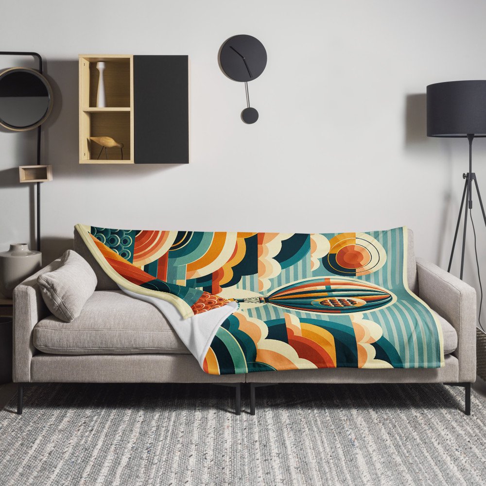 Retro Hot Air Balloon with Geometric Clouds — Throw Blanket